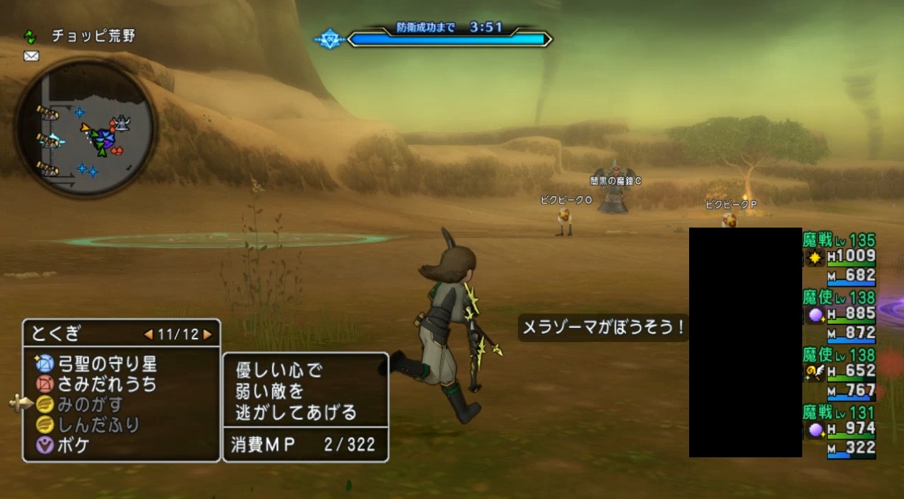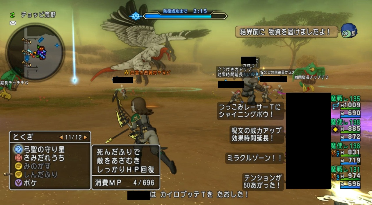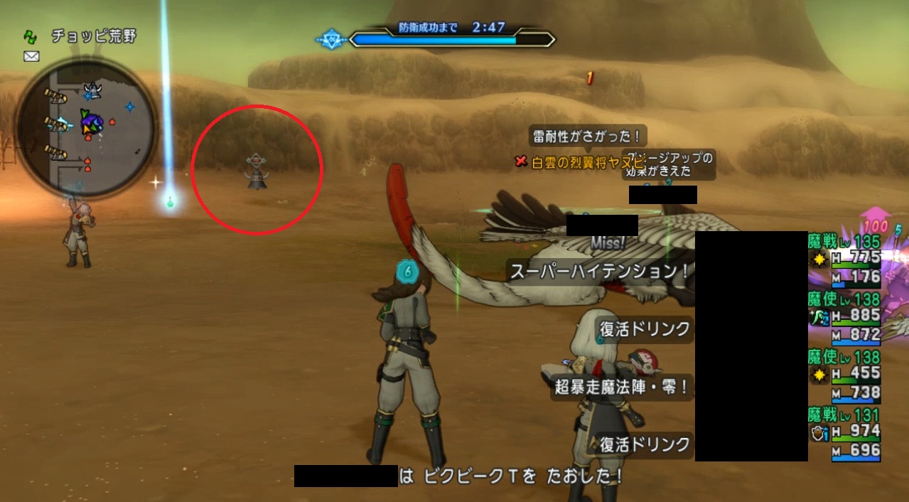 左右の端の方に闇の魔鐘と大闇黒の魔鐘が出現。沸き場所はランダムで、端っこに出ると気付きにくいので注意。これを見逃すとザコ敵を呼ばれ、6:20頃に門が襲われます。