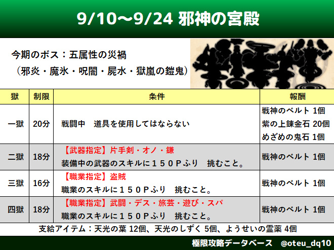 3獄 | 呪闇の鎧鬼 獄嵐の鎧鬼 | 呪闇から | ◎眠り、マヒ、呪い ○呪文ダメージ減 △ブレスダメージ減 |