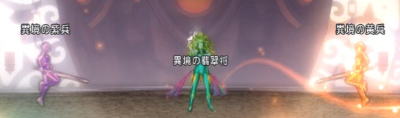 敵は最初「異境の翡翠将+お供2匹」の3匹が同時に出現。