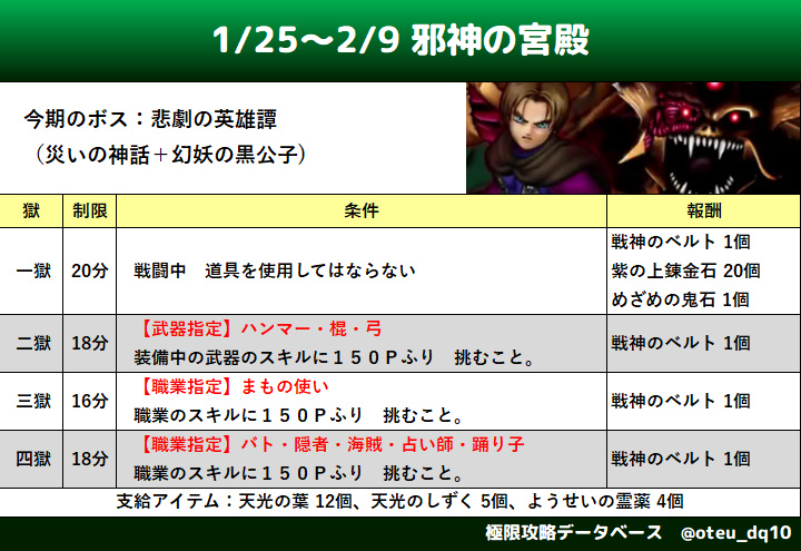 | 挑戦条件 | ・眠れる勇者と導きの盟友クリア (※Ver2メインストーリー) 職業レベル85以上 |