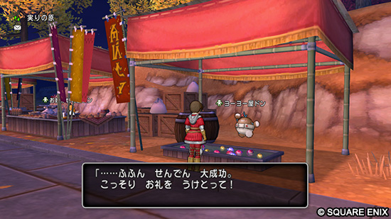 クエストをクリアすると、「神狐装備」が獲得でき、「おまつりドングリ」を集めれば、かさ装備「りんごあめ」と交換もできます!