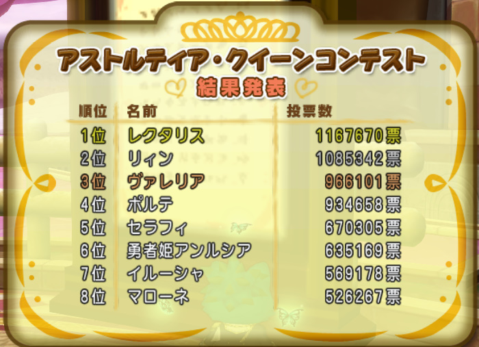 | 順位 | キャラ | 票数 |