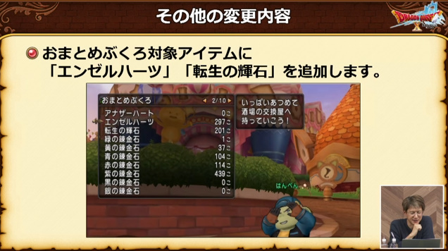 おまとめぶくろの対象アイテムにエンゼルハーツと転生の輝石を追加