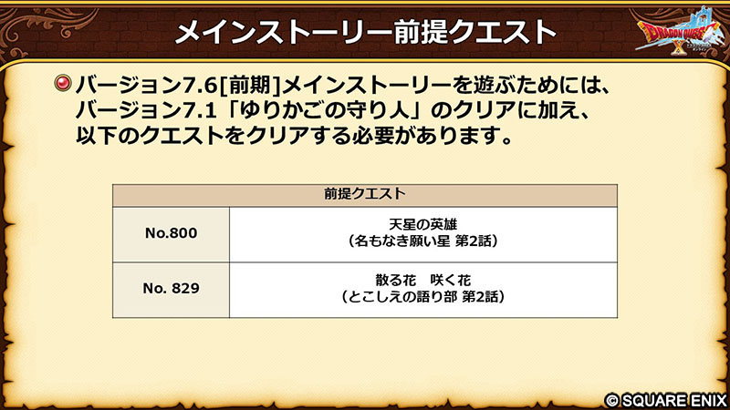 7.6メインストーリーで遊ぶためには、バージョン7.5クリアの他に下記のクエストクリアが必要です。