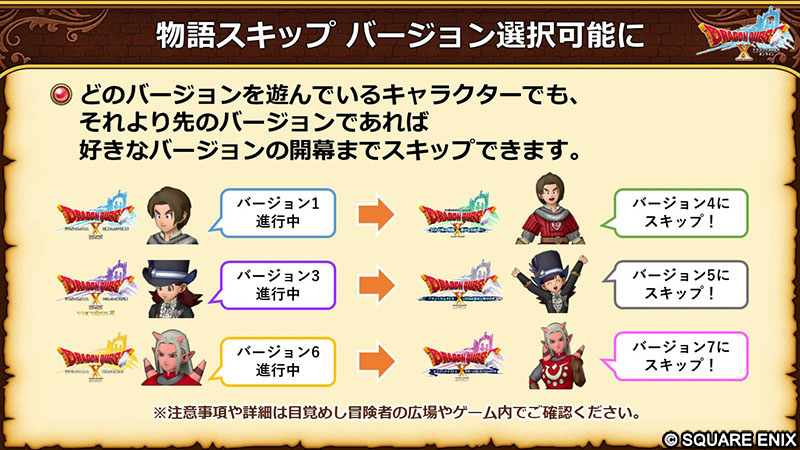 作成済みのキャラクターで、どのバージョンまでスキップするか選べるように(従来は最新バージョンにのみスキップ可能)