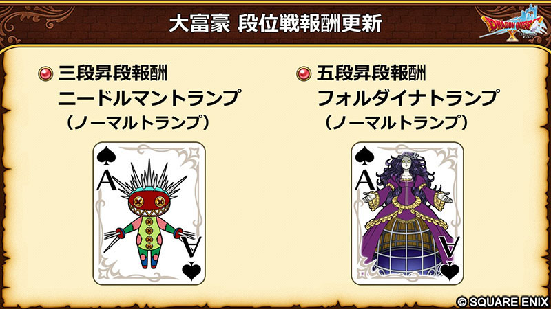段位戦報酬更新。三段・五段・七段でトランプ追加。
