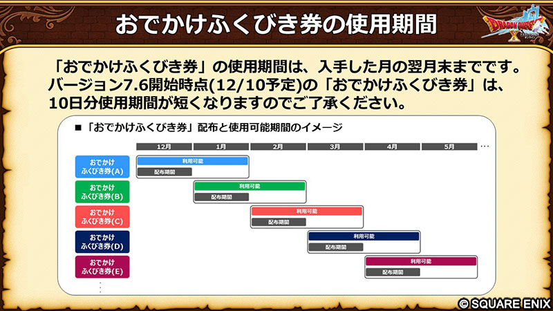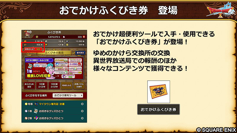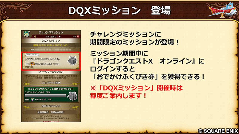 ・DQXミッション追加。アプデ等の機会に更新され、ゲームにログインすると便利ツールの福引券がもらえる。