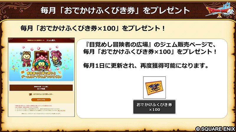 ・ジェム販売ページを見に行くと、毎月おでかけふくびき券が受け取れる