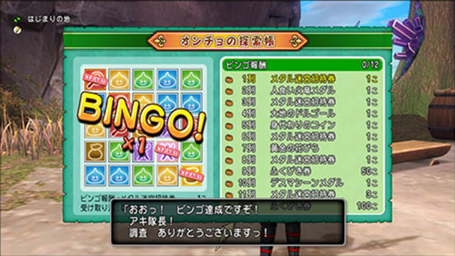 お題を五十音順で紹介!オンチョの探索帳に書かれたお題は全25マス。内容は全プレイヤー同じですが、マスの配置は人によって異なります。