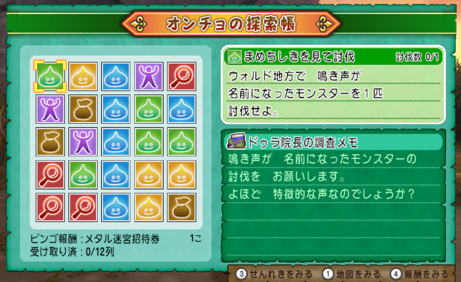 下記の順で廻ると効率よくクリアできます。まもの使いで行くと「12匹倒す」がエモノ呼びで効率よく行えます。