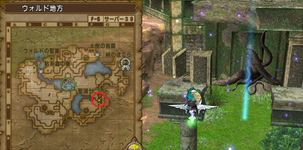 12 | タービア草原にある大木の頂上からの景色を調査し適切なしぐさをせよ 【答え】タービア草原 E-6 しぐさ「すわる」 ![]() |