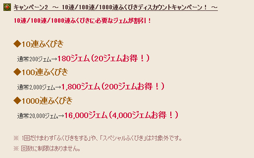 このキャンペーン中は普段よりちょっと安く1000連ふくびきを引けます!