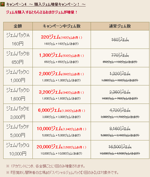 ちなみにジェムはアプリ内で買うより広場から買った方がお得です!