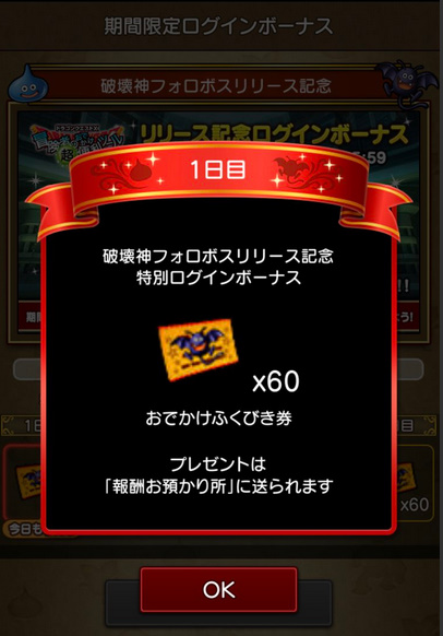 ところで今回もらえる報酬は「おでかけふくびき券」60枚×5回です。