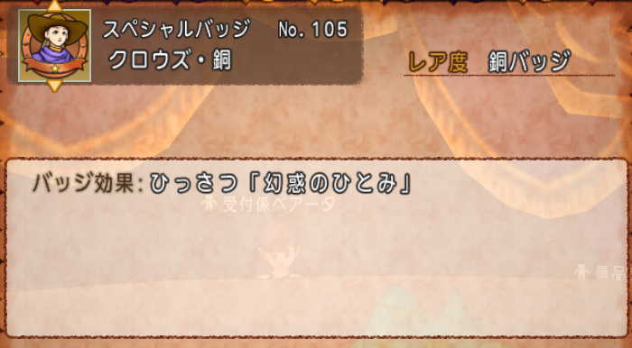 クロウズ・銅は、通常のバトルロードの景品(景品交換所マディア)でコイン200枚で交換できる「バッジパック銅」から低確率で出るほか、バッジじいさんでゴースト銅、チャームバット銅、シルバーマント銅各1個でも交換可能。「バッジ交換券」でバッジじいさんと交換する手もあります。