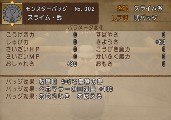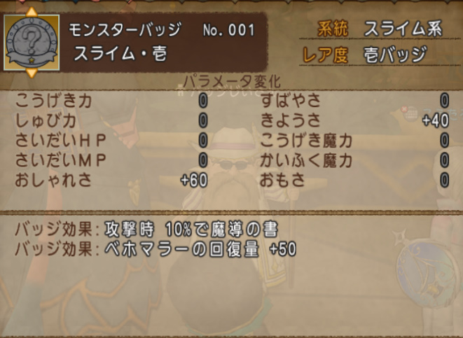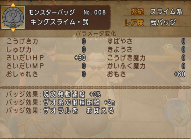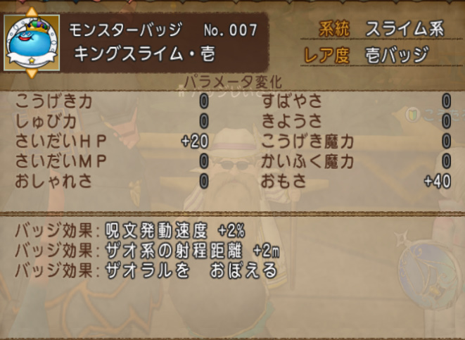 ただ結構バッジによるみたいで、キングスライムの場合はこんな感じ。