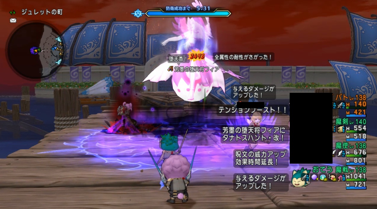 この戦いは状態異常がヤバくて、種類が多すぎて絶対みんな完全には防いでないので、弓聖の守り星で守りました。