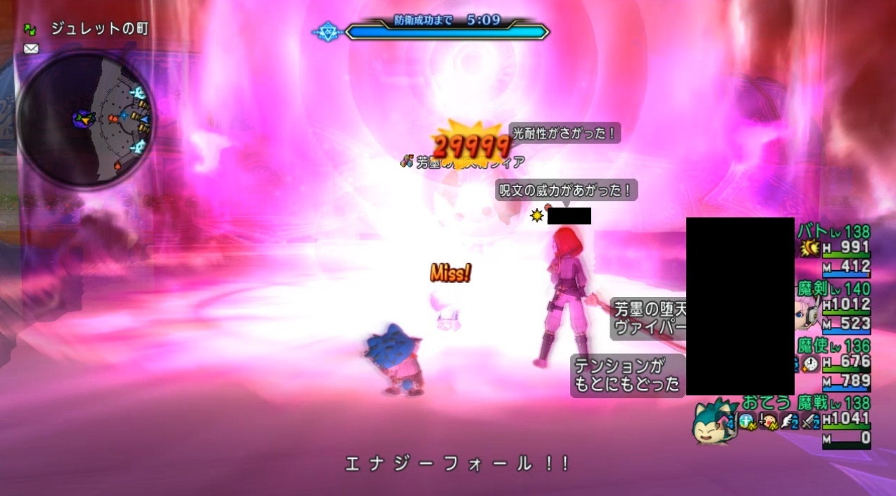 必殺がチャージしたら、耐性低下が入ってるのを確認してから「マジックルーレット→エナジーフォール→マダンテ」を使用。ちなみにエナジーフォールとマダンテは光属性。
