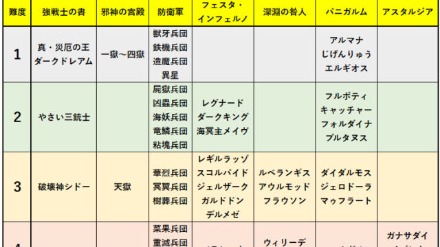その他オートマッチング難度表(仮) 改訂版を公開 先日こちら↓wで仮公開したものを、 皆さんのご意見も参考に、作り変えました! ※今回もオートマ限定です。緑玉の募集は対象外です。 参考にしたご意見 破壊神シドー↑↑ 五属... 2026.01.18その他