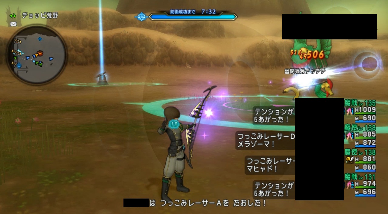 中央の3つの砲弾照準地点に、左から順に闇黒の魔鐘、幽閉獄長チッチチ、ザコ敵が出現。素早く倒しましょう。魔鐘は大砲係が倒してもOK。