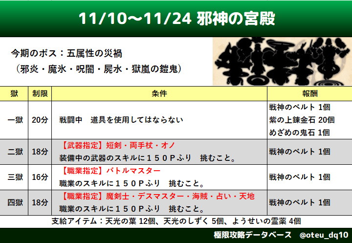 | 1獄 | 邪炎の鎧鬼 屍水の鎧鬼 | 邪炎から | ◎どく、転び、マヒ ○呪い △ブレスダメージ減 |