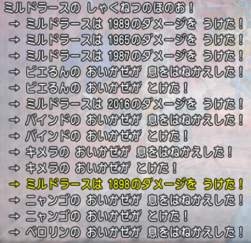 キメラ、ドラゴンキッズ、メタッピーが覚える「おいかぜ」を使えば、ミルドラースのブレスを全て反射可能。 なおミルドラースはこちらがおいかぜ状態でもブレスを使ってきます。