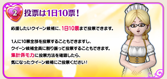 投票は1日10票まで。投票権は毎日6時に回復します。