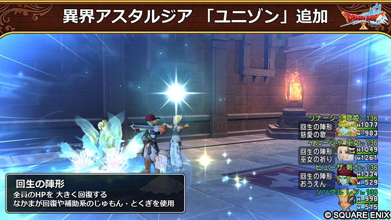 ユニゾンは「いっせいこうげき」「回生の陣形」の2種類。