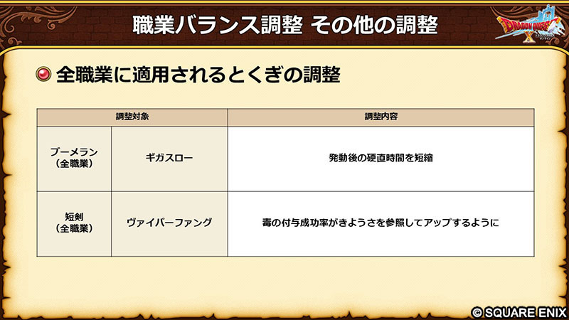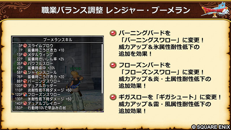 - 他にギガスロー、ヴァイパーファング、ドラゴラムに変更あり