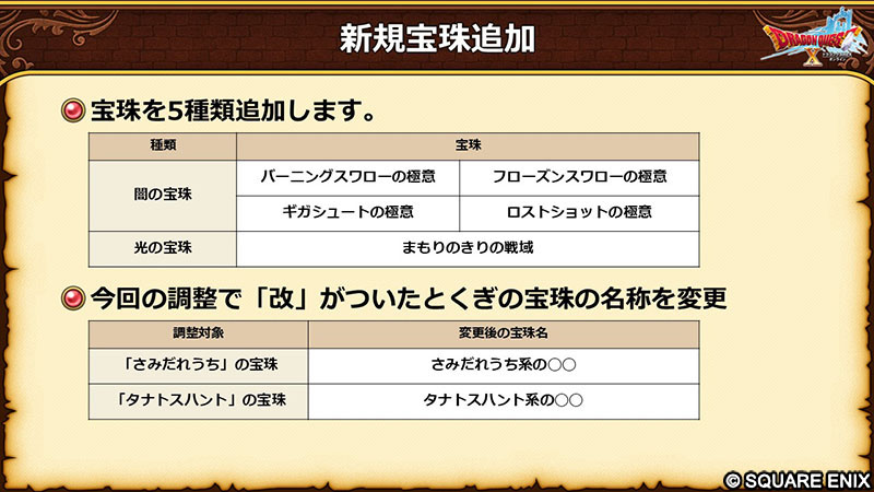 また、名前に「改」が付いたスキルの宝珠の名称が変更。