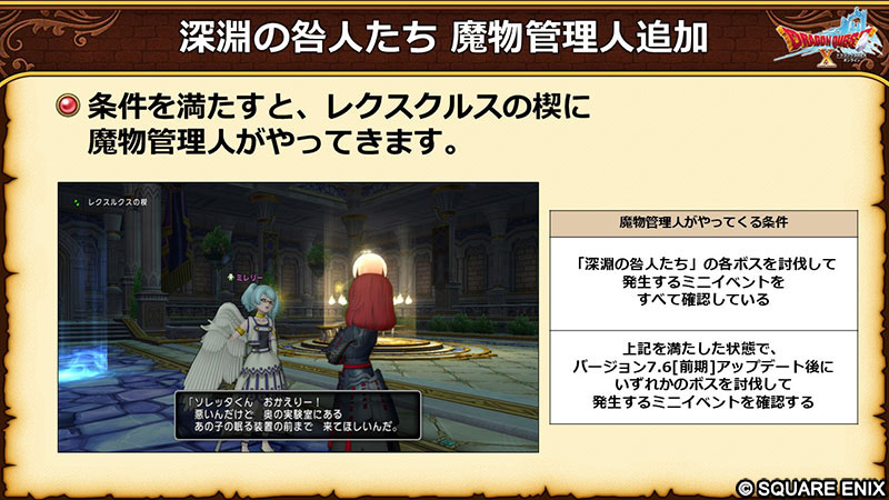 各ボスを倒してイベントが発生。レクスクルスの楔に魔物管理人が追加