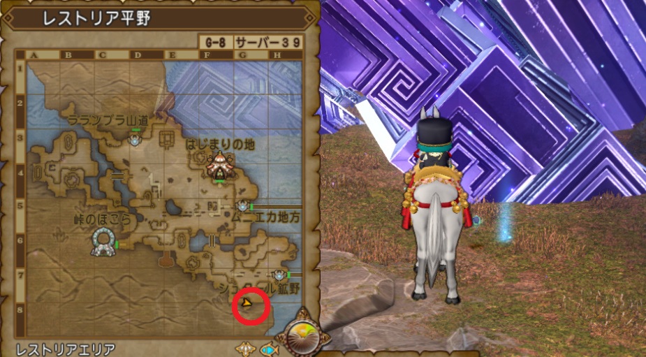| 1 | レストリア平野/ひときわ巨大なジア・クトの結晶を調査せよ 【答え】G-8のキラキラを調べる ![]() |