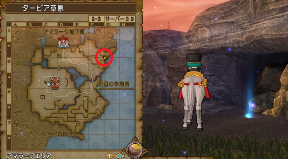 | 12 | タービア草原にある大木の頂上からの景色を調査し適切なしぐさをせよ 【答え】タービア草原 E-6 しぐさ「すわる」 ![]() |