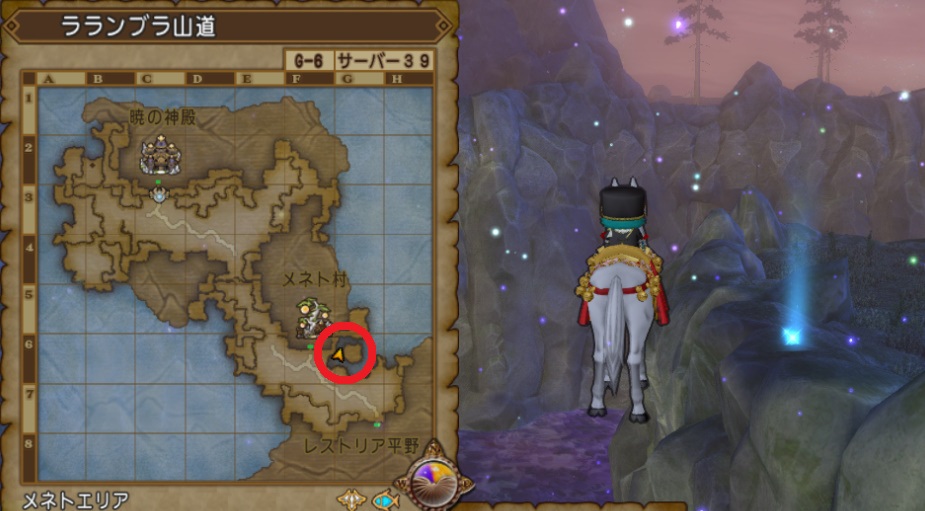| 7 | ラランブラ山道/メネト村付近に浮かぶ小さな孤島について調査せよ 【答え】G-6のキラキラを調べる ![]() |